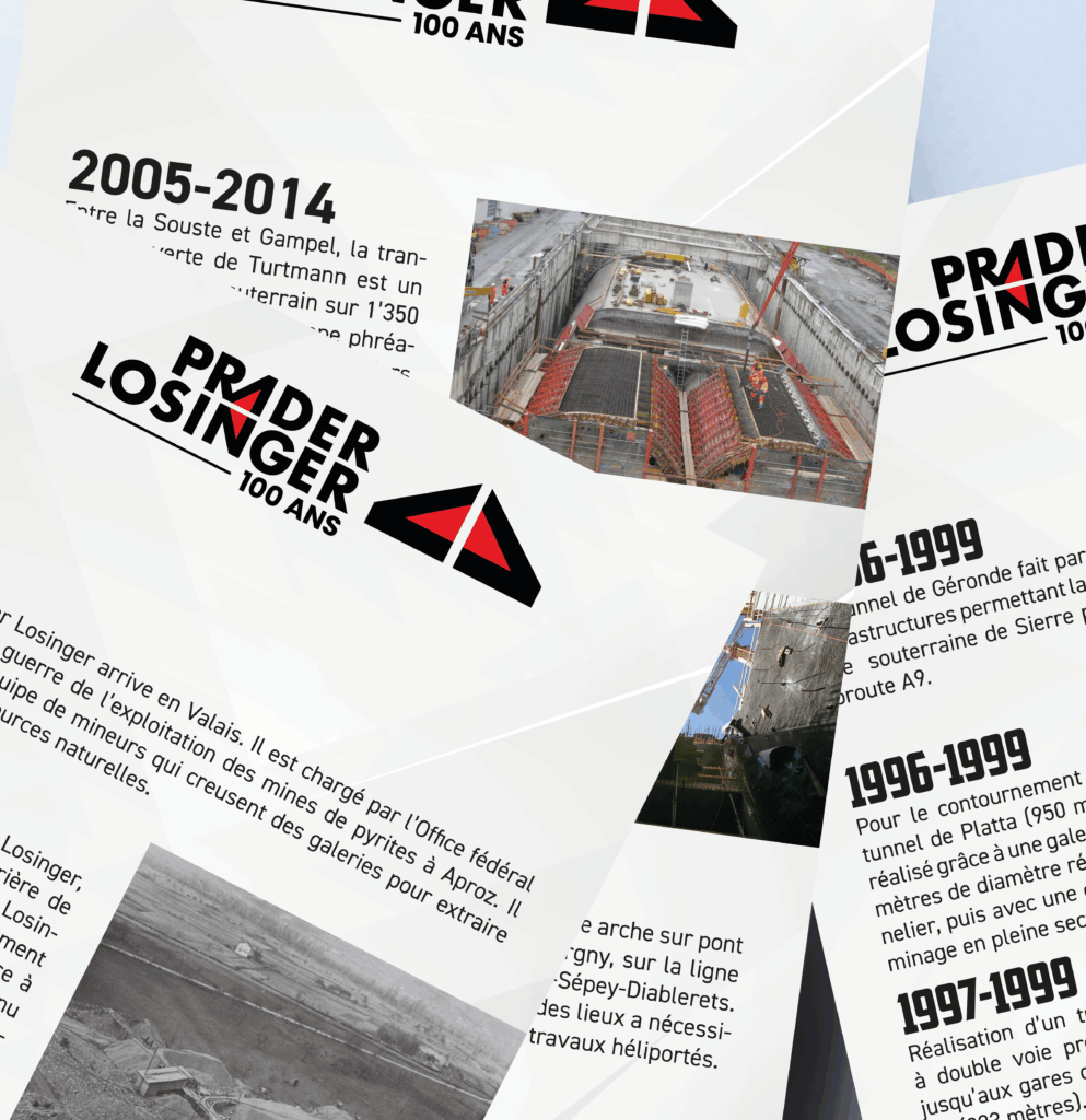 À l’occasion des 100 ans de Prader Losinger, Bilatéral a conçu une identité visuelle commémorative symbolisant un siècle d’innovation et de savoir-faire.